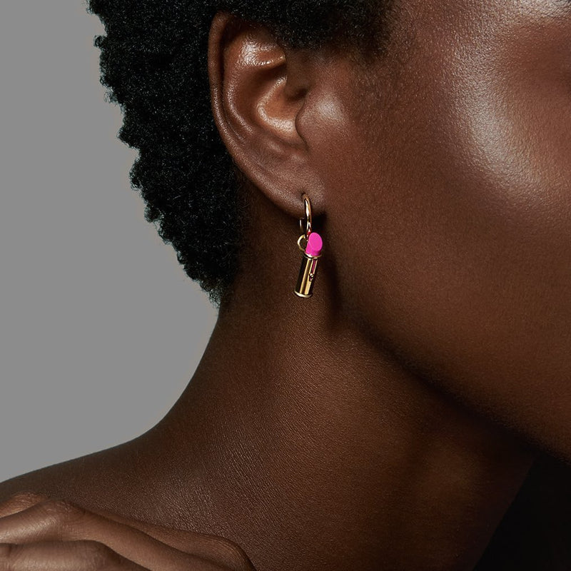 Every Lipstick Charm has been carefully handmade in the UK by our master craftsman. Taking at least five hours to be perfectly and expertly made, the attention to detail and finishing is second to none. Each Lipstick Charm measures approximately 8mm x 4mm closed and 20mm x 4mm when the lipstick is fully pushed up. The ‘lipstick’ element is made from high quality resin (also made in the UK) specifically coloured to complement three of my True Velvet Lipsticks; Velvet Ribbon, Velvet Morning and Velvet Carnival. Made in 18 carat gold, the brush polished casing features four intricate components; the barrel, end cap and two loops. All Lipstick Charms have been monogrammed on the base. Originating from a hand engraving and replicated through the ‘lost wax’ method of gold casting.