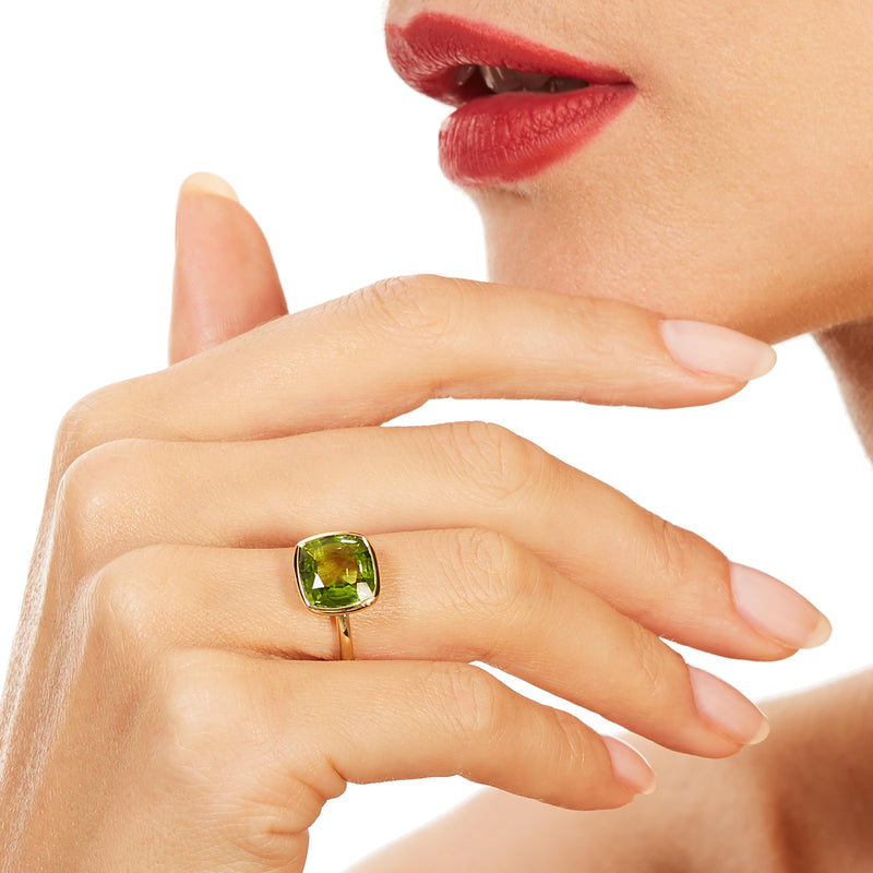 The Anderson Cushion Cut Peridot in Solid 18ct Gold