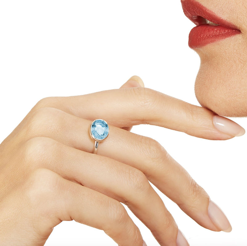 Oval Cut Blue Topaz in Solid Sterling Silver