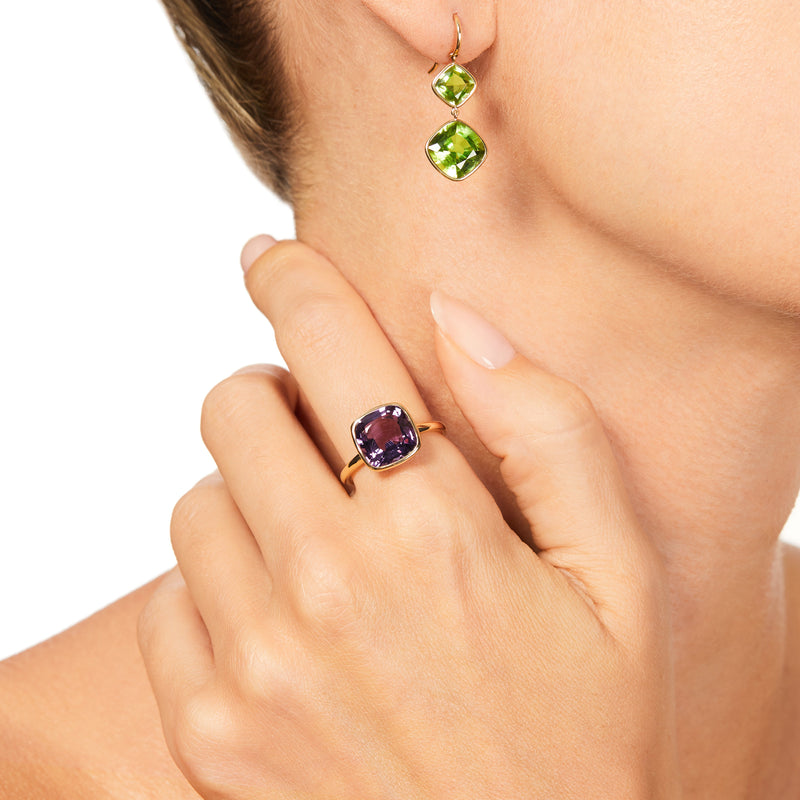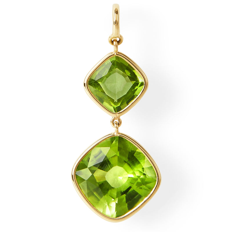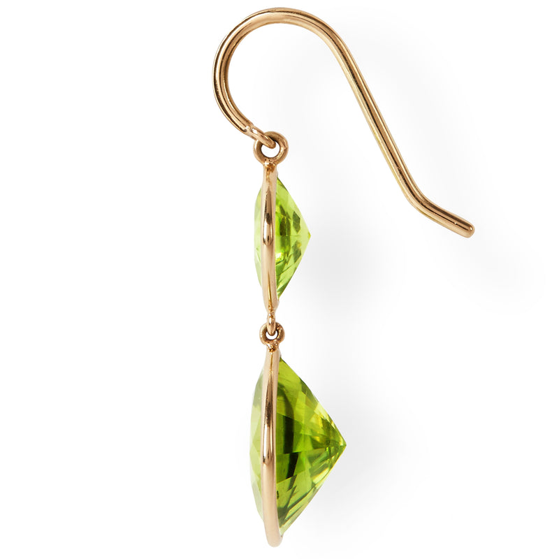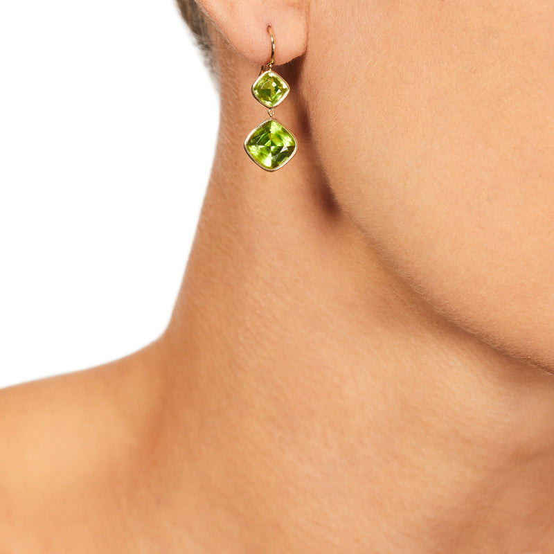 The Anderson Earrings Cushion Cut Peridot Double Drop Earrings in Solid 18ct Gold
