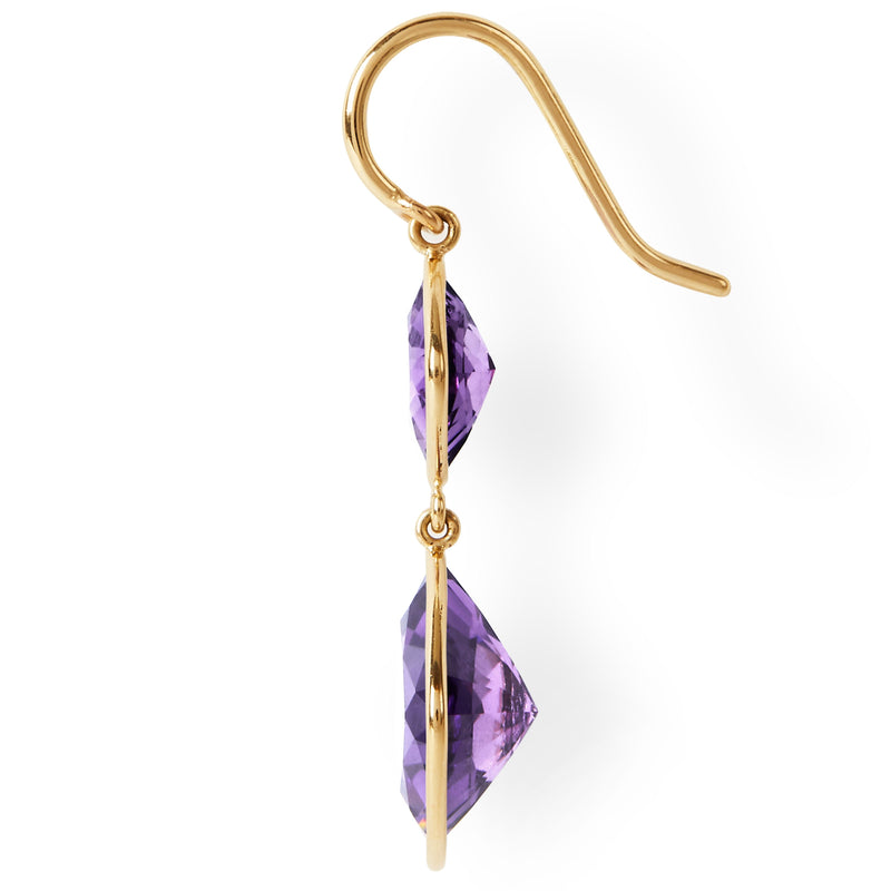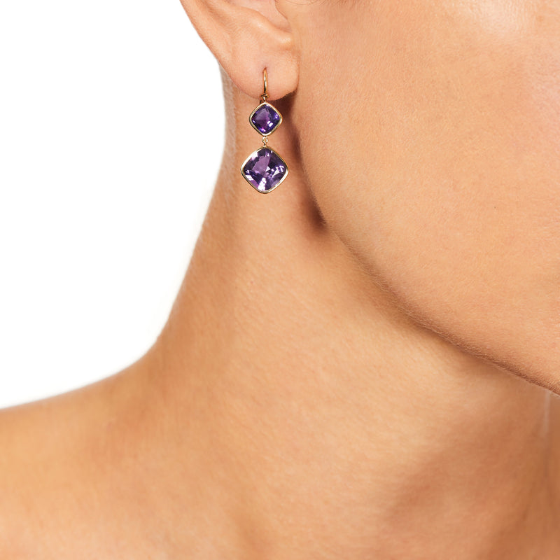 The Eva Earrings Cushion Cut Amethyst Double Drop Earrings in Solid 18ct Gold