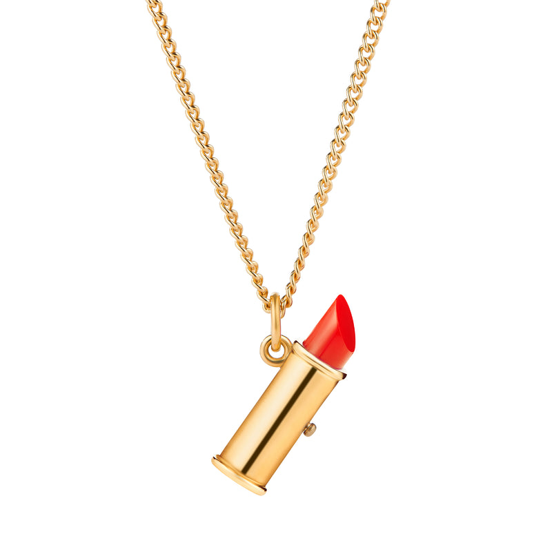 Velvet Morning Lipstick Charm Necklace Handmade in Solid 18ct Gold
